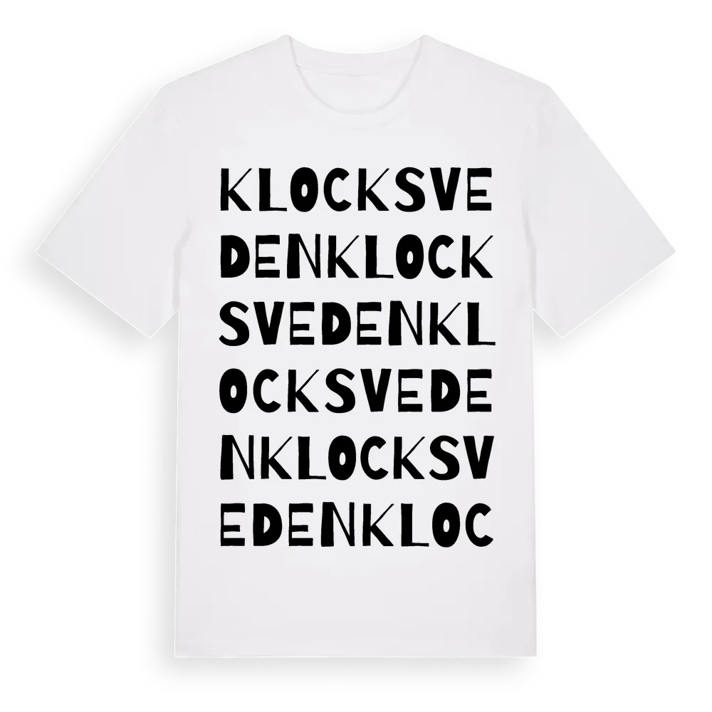 Klocksveden ordlek t-shirt är inspirerad av Klocksveden i Gävleborgs län, Sverige. Tröjan är designad för dig som har en speciell koppling till platsen – oavsett om du bor här, har rötterna här eller bara älskar Klocksveden.