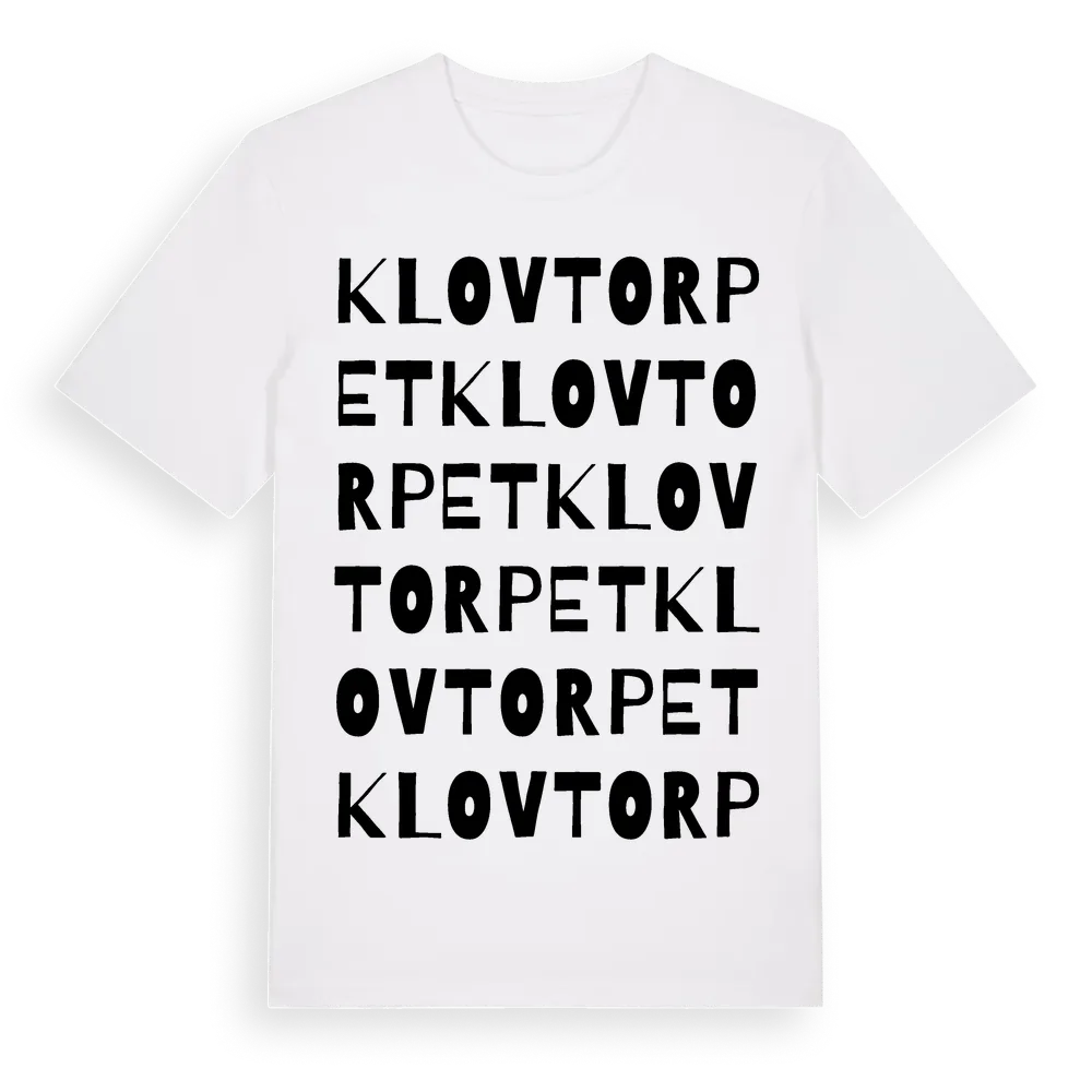Klovtorpet ordlek t-shirt är inspirerad av byn Klovtorpet i Gävleborgs län, Sverige. Tröjan är designad för dig som har en speciell koppling till platsen – oavsett om du bor här, har rötterna här eller bara älskar Klovtorpet.