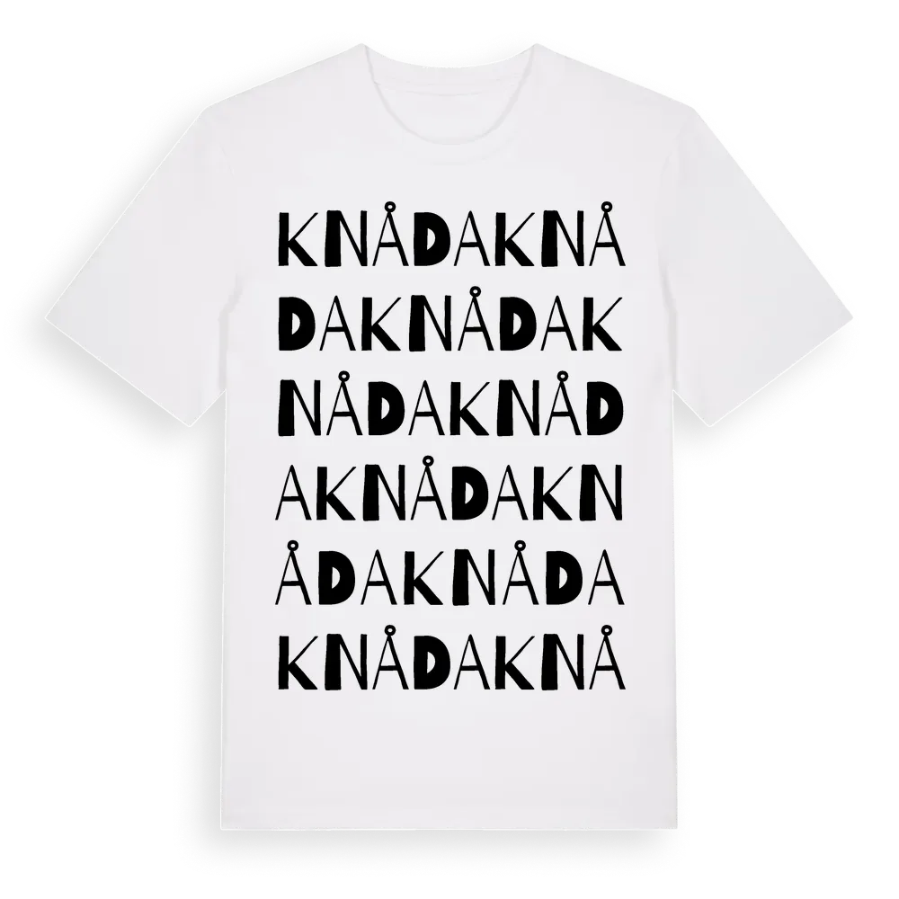 En ordlek byggd på Knådas namn. Subtilt och klurig – ett motiv som bara de som verkligen känner platsen fullt ut förstår. Premium bomull, unisex – från byn Knåda i Gävleborgs län.