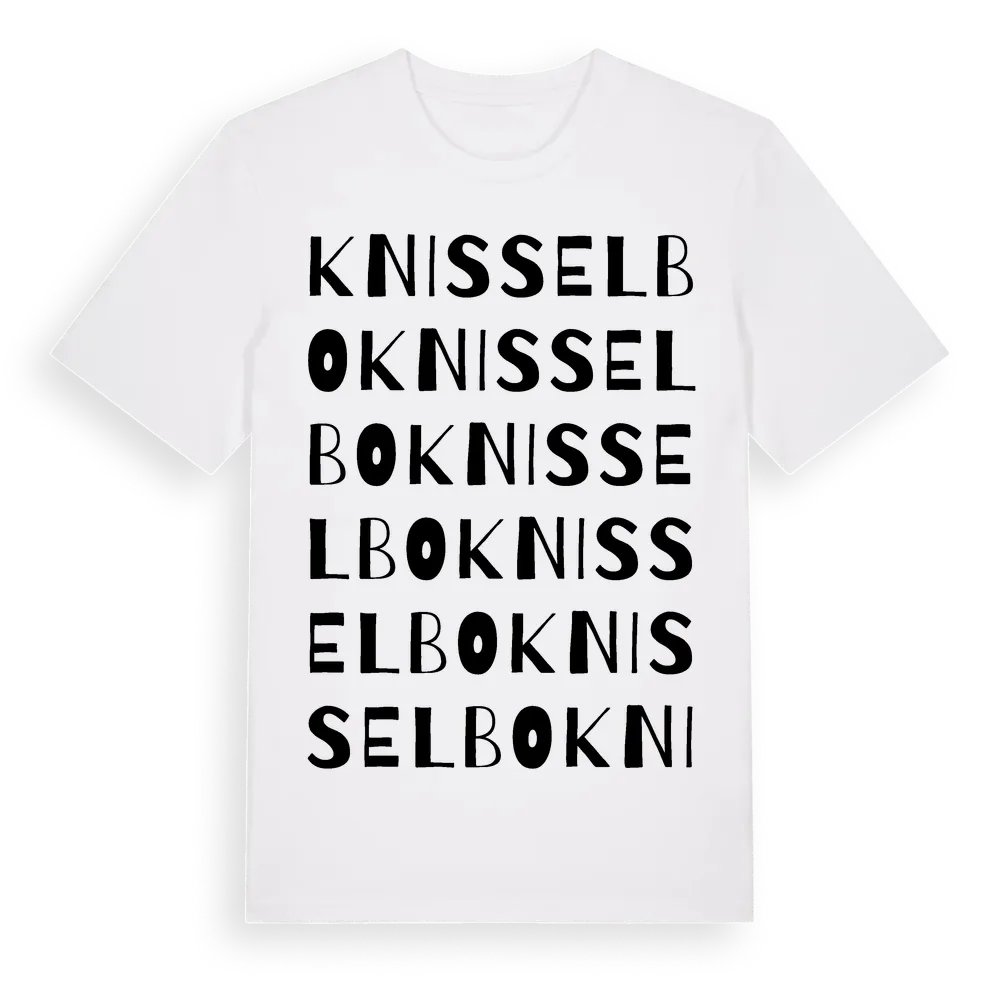 Knisselbo ordlek t-shirt är inspirerad av byn Knisselbo i Gävleborgs län, Sverige. Tröjan är designad för dig som har en speciell koppling till platsen – oavsett om du bor här, har rötterna här eller bara älskar Knisselbo.
