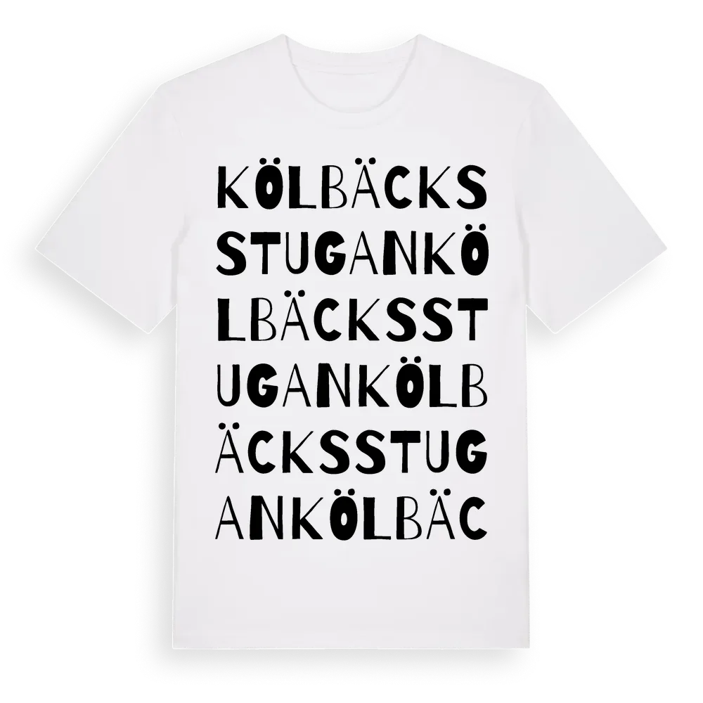 Kölbäcksstugan ordlek t-shirt är inspirerad av Kölbäcksstugan i Gävleborgs län, Sverige. Tröjan är designad för dig som har en speciell koppling till platsen – oavsett om du bor här, har rötterna här eller bara älskar Kölbäcksstugan.