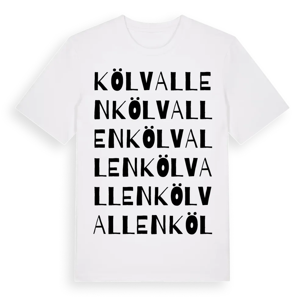 En ordlek byggd på Kölvallens namn. Subtilt och klurig – ett motiv som bara de som verkligen känner platsen fullt ut förstår. Premium bomull, unisex – från Kölvallen i Gävleborgs län.