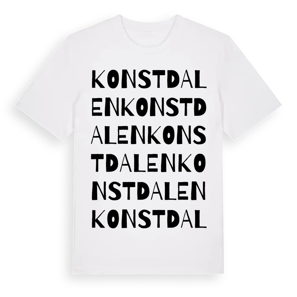 Konstdalen ordlek t-shirt är inspirerad av byn Konstdalen i Gävleborgs län, Sverige. Tröjan är designad för dig som har en speciell koppling till platsen – oavsett om du bor här, har rötterna här eller bara älskar Konstdalen.