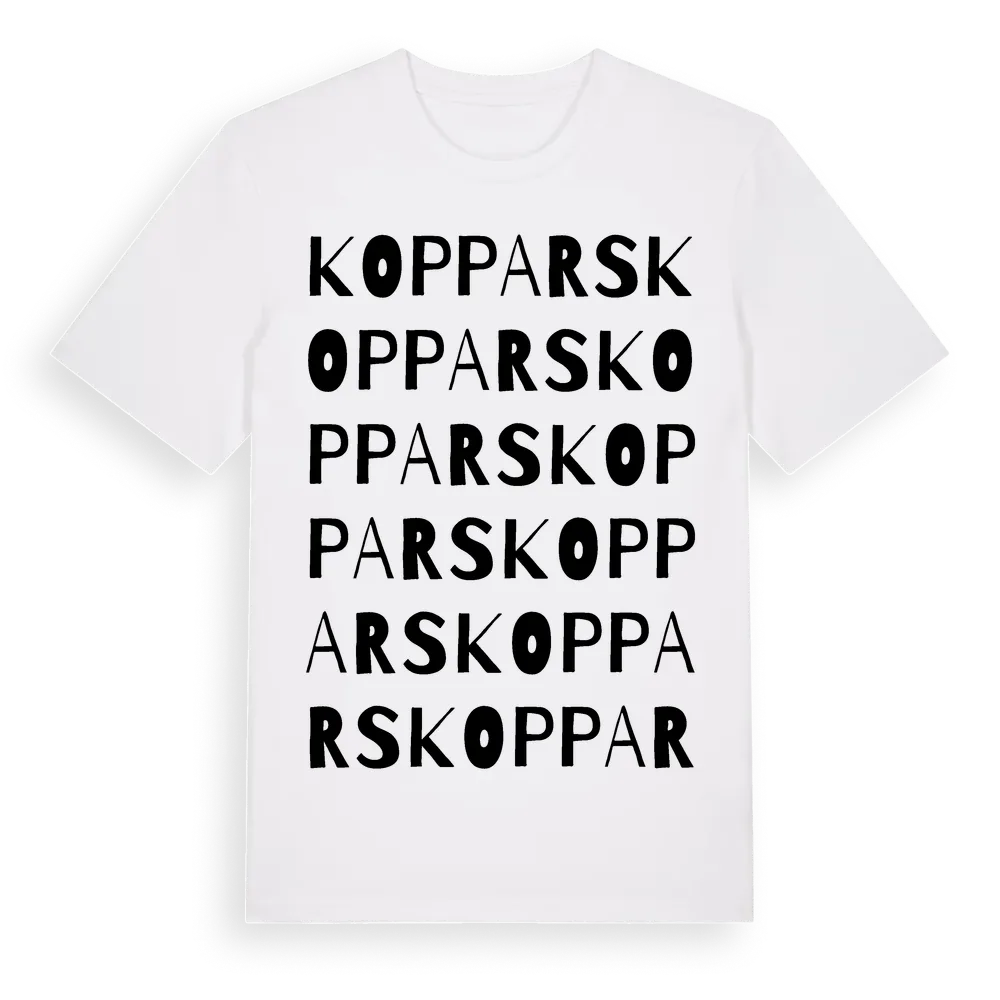 Koppars ordlek t-shirt är inspirerad av Koppars i Gävleborgs län, Sverige. Tröjan är designad för dig som har en speciell koppling till platsen – oavsett om du bor här, har rötterna här eller bara älskar Koppars.