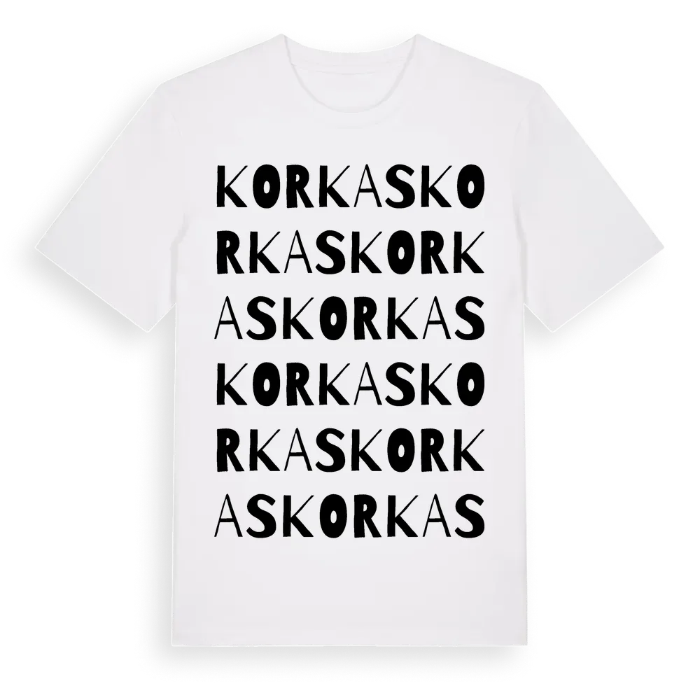 Korkas ordlek t-shirt är inspirerad av Korkas i Gävleborgs län, Sverige. Tröjan är designad för dig som har en speciell koppling till platsen – oavsett om du bor här, har rötterna här eller bara älskar Korkas.
