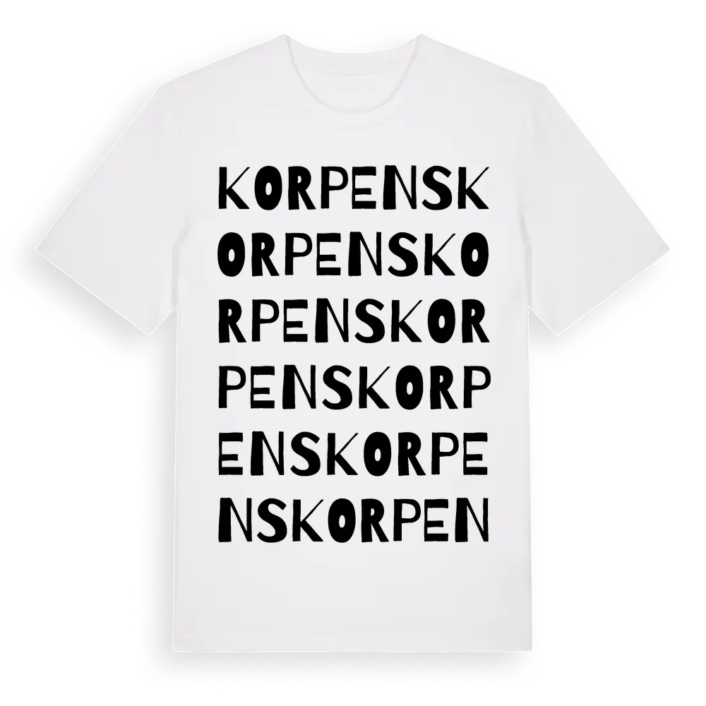 Korpens ordlek t-shirt är inspirerad av Korpens i Gävleborgs län, Sverige. Tröjan är designad för dig som har en speciell koppling till platsen – oavsett om du bor här, har rötterna här eller bara älskar Korpens.