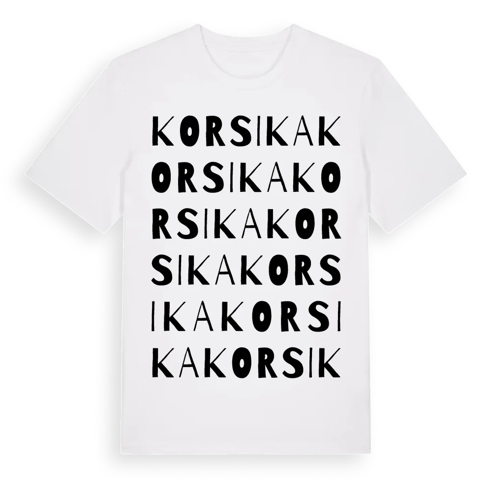 Korsika ordlek t-shirt är inspirerad av stadsdelen Korsika i Gävleborgs län, Sverige. Tröjan är designad för dig som har en speciell koppling till platsen – oavsett om du bor här, har rötterna här eller bara älskar Korsika.