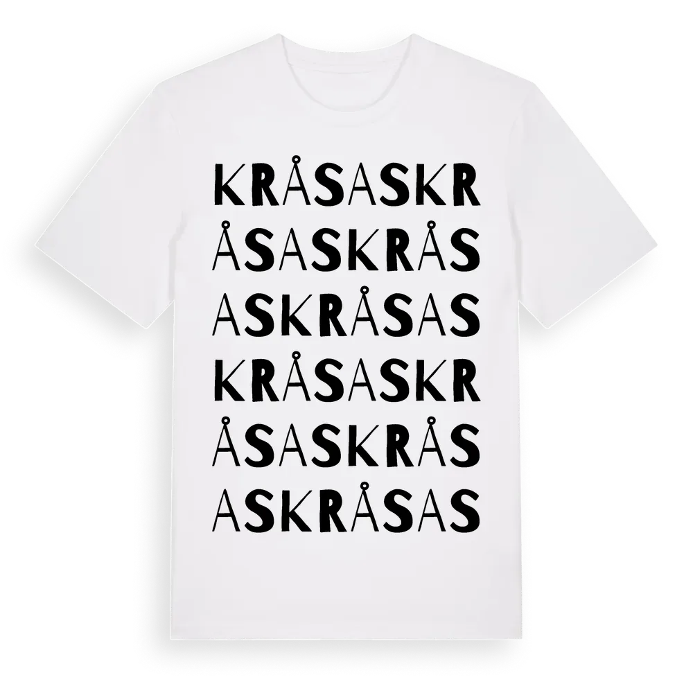 Kråsas ordlek t-shirt är inspirerad av Kråsas i Gävleborgs län, Sverige. Tröjan är designad för dig som har en speciell koppling till platsen – oavsett om du bor här, har rötterna här eller bara älskar Kråsas.