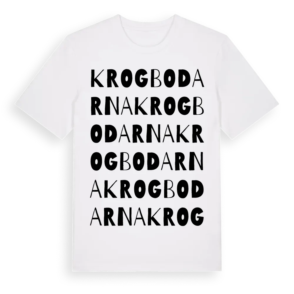 Krogbodarna ordlek t-shirt är inspirerad av Krogbodarna i Gävleborgs län, Sverige. Tröjan är designad för dig som har en speciell koppling till platsen – oavsett om du bor här, har rötterna här eller bara älskar Krogbodarna.