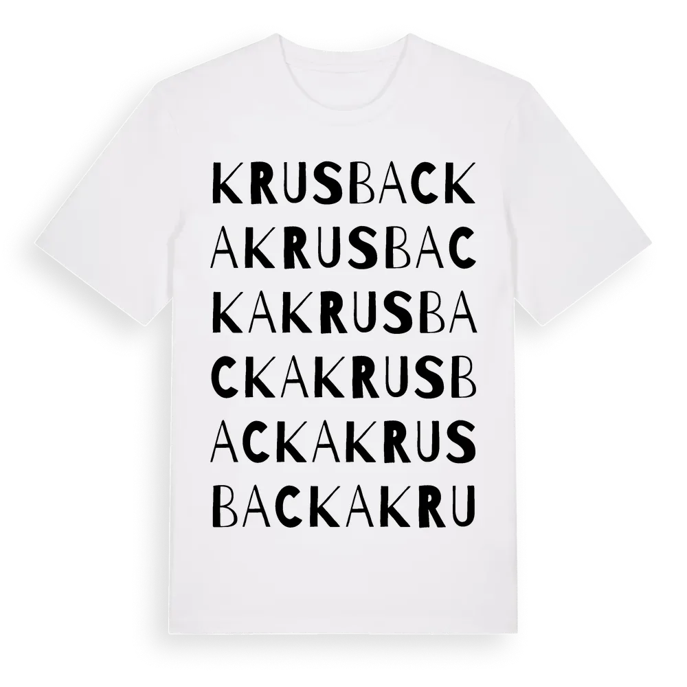 Krusbacka ordlek t-shirt är inspirerad av Krusbacka i Gävleborgs län, Sverige. Tröjan är designad för dig som har en speciell koppling till platsen – oavsett om du bor här, har rötterna här eller bara älskar Krusbacka.