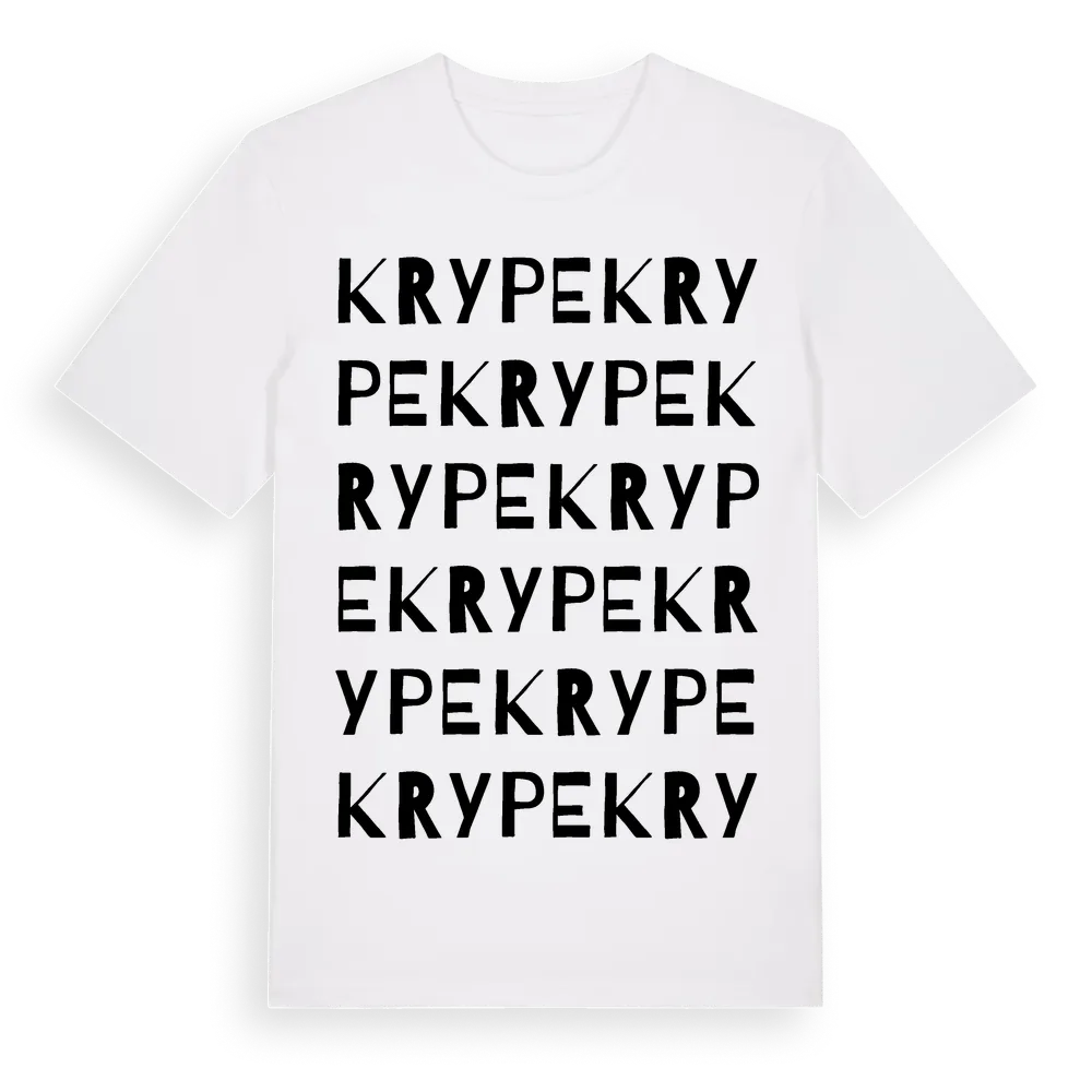 En ordlek byggd på Krypes namn. Subtilt och klurig – ett motiv som bara de som verkligen känner platsen fullt ut förstår. Premium bomull, unisex – från Krype i Gävleborgs län.