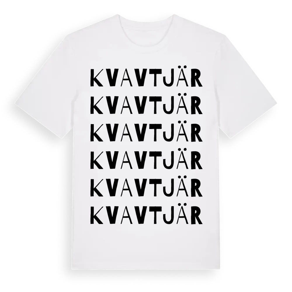 Kvavtjär ordlek t-shirt är inspirerad av byn Kvavtjär i Gävleborgs län, Sverige. Tröjan är designad för dig som har en speciell koppling till platsen – oavsett om du bor här, har rötterna här eller bara älskar Kvavtjär.
