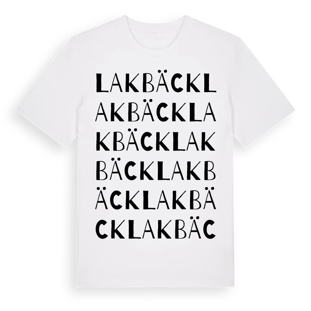 Lakbäck ordlek t-shirt är inspirerad av byn Lakbäck i Gävleborgs län, Sverige. Tröjan är designad för dig som har en speciell koppling till platsen – oavsett om du bor här, har rötterna här eller bara älskar Lakbäck.
