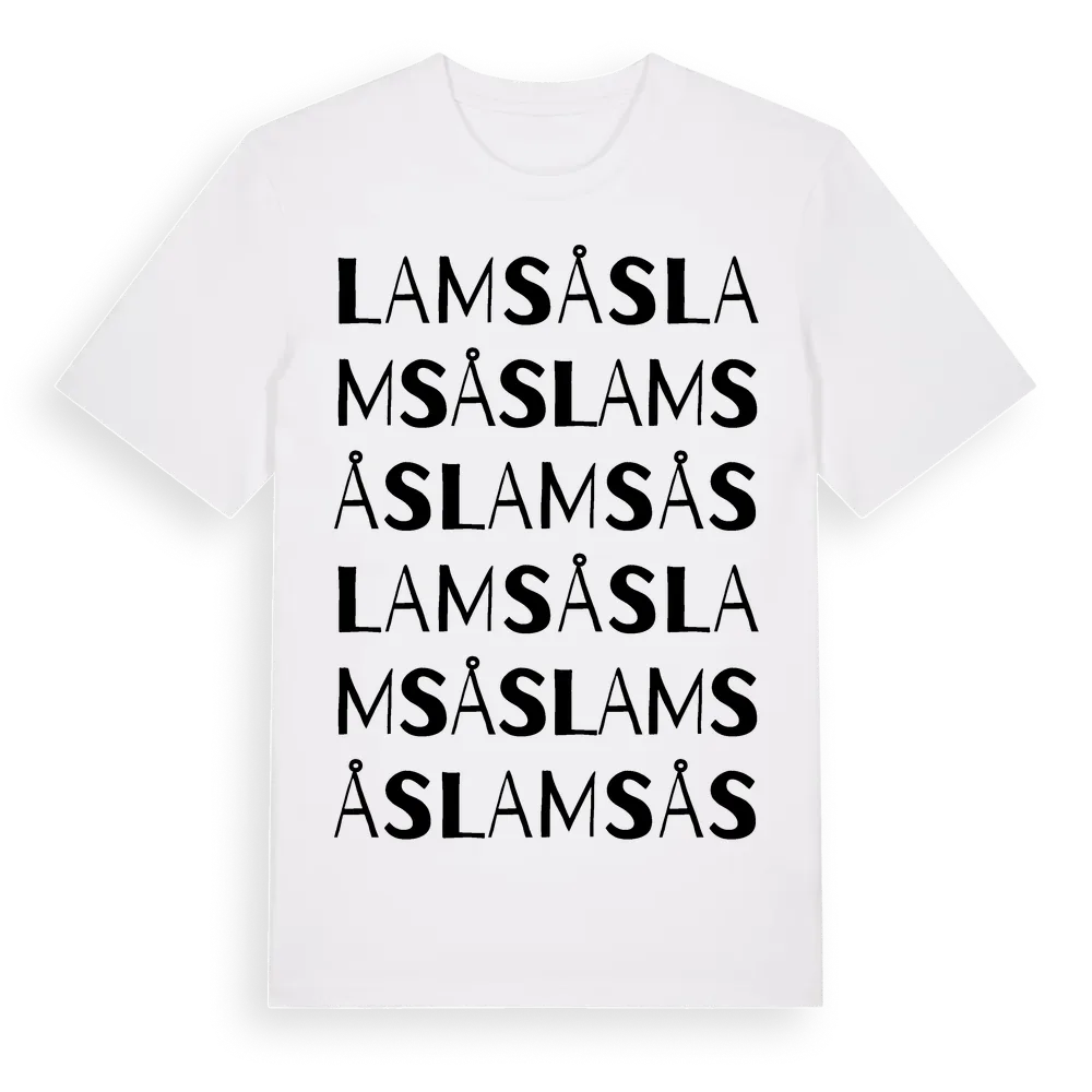 Lamsås ordlek t-shirt är inspirerad av Lamsås i Gävleborgs län, Sverige. Tröjan är designad för dig som har en speciell koppling till platsen – oavsett om du bor här, har rötterna här eller bara älskar Lamsås.