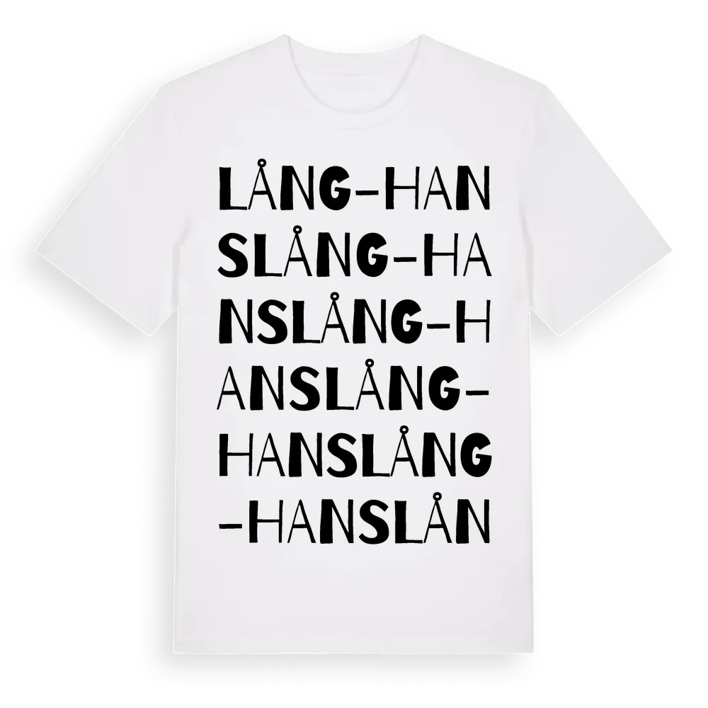 Lång-Hans ordlek t-shirt är inspirerad av Lång-Hans i Gävleborgs län, Sverige. Tröjan är designad för dig som har en speciell koppling till platsen – oavsett om du bor här, har rötterna här eller bara älskar Lång-Hans.