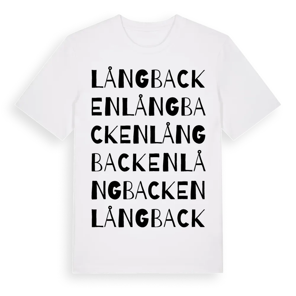 Långbacken ordlek t-shirt är inspirerad av Långbacken i Gävleborgs län, Sverige. Tröjan är designad för dig som har en speciell koppling till platsen – oavsett om du bor här, har rötterna här eller bara älskar Långbacken.