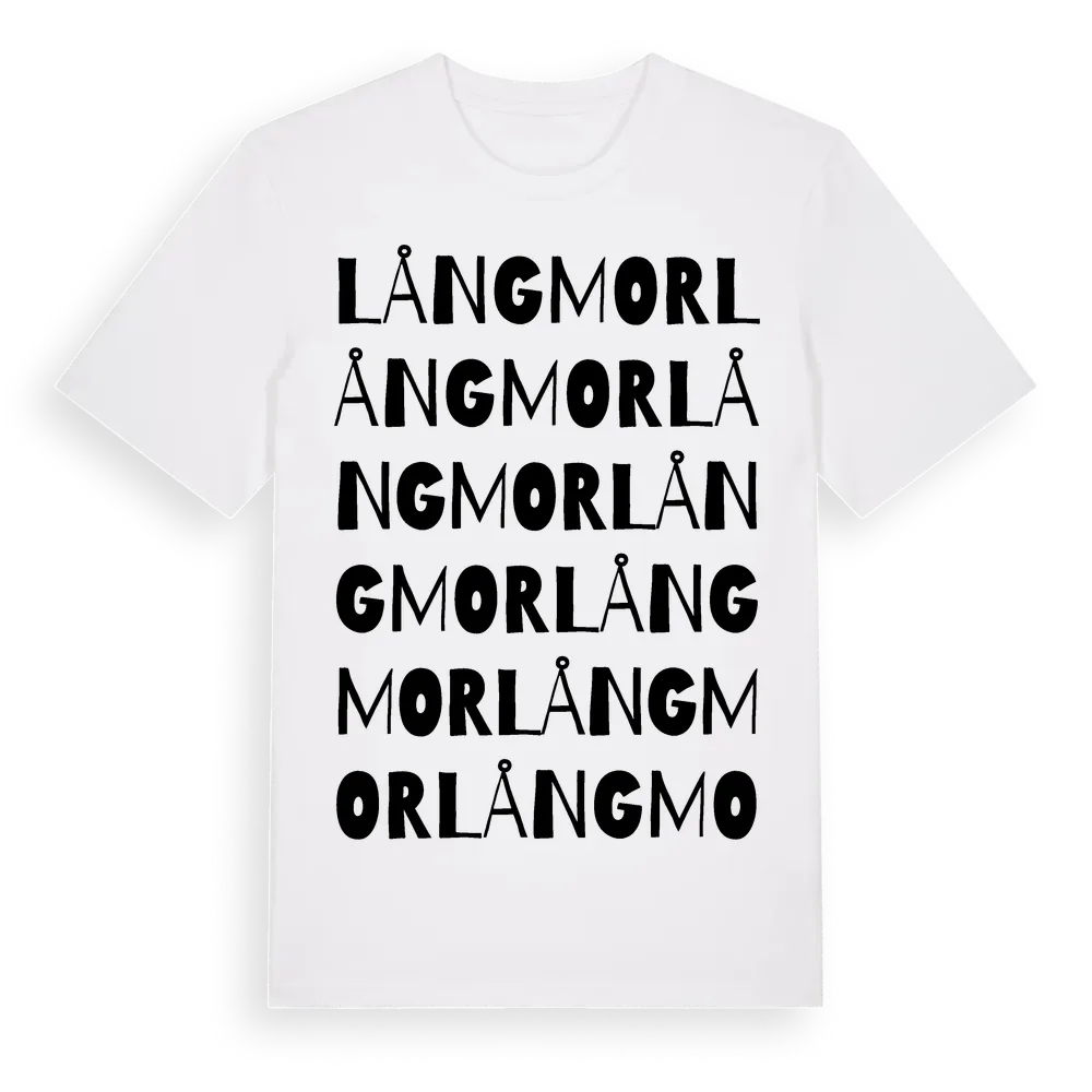 Långmor ordlek t-shirt är inspirerad av Långmor i Gävleborgs län, Sverige. Tröjan är designad för dig som har en speciell koppling till platsen – oavsett om du bor här, har rötterna här eller bara älskar Långmor.