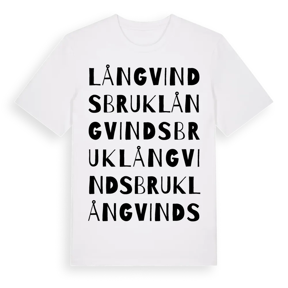 Långvinds Bruk ordlek t-shirt är inspirerad av byn Långvinds Bruk i Gävleborgs län, Sverige. Tröjan är designad för dig som har en speciell koppling till platsen – oavsett om du bor här, har rötterna här eller bara älskar Långvinds Bruk.