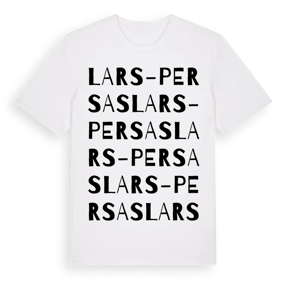 Lars-Persas ordlek t-shirt är inspirerad av Lars-Persas i Gävleborgs län, Sverige. Tröjan är designad för dig som har en speciell koppling till platsen – oavsett om du bor här, har rötterna här eller bara älskar Lars-Persas.