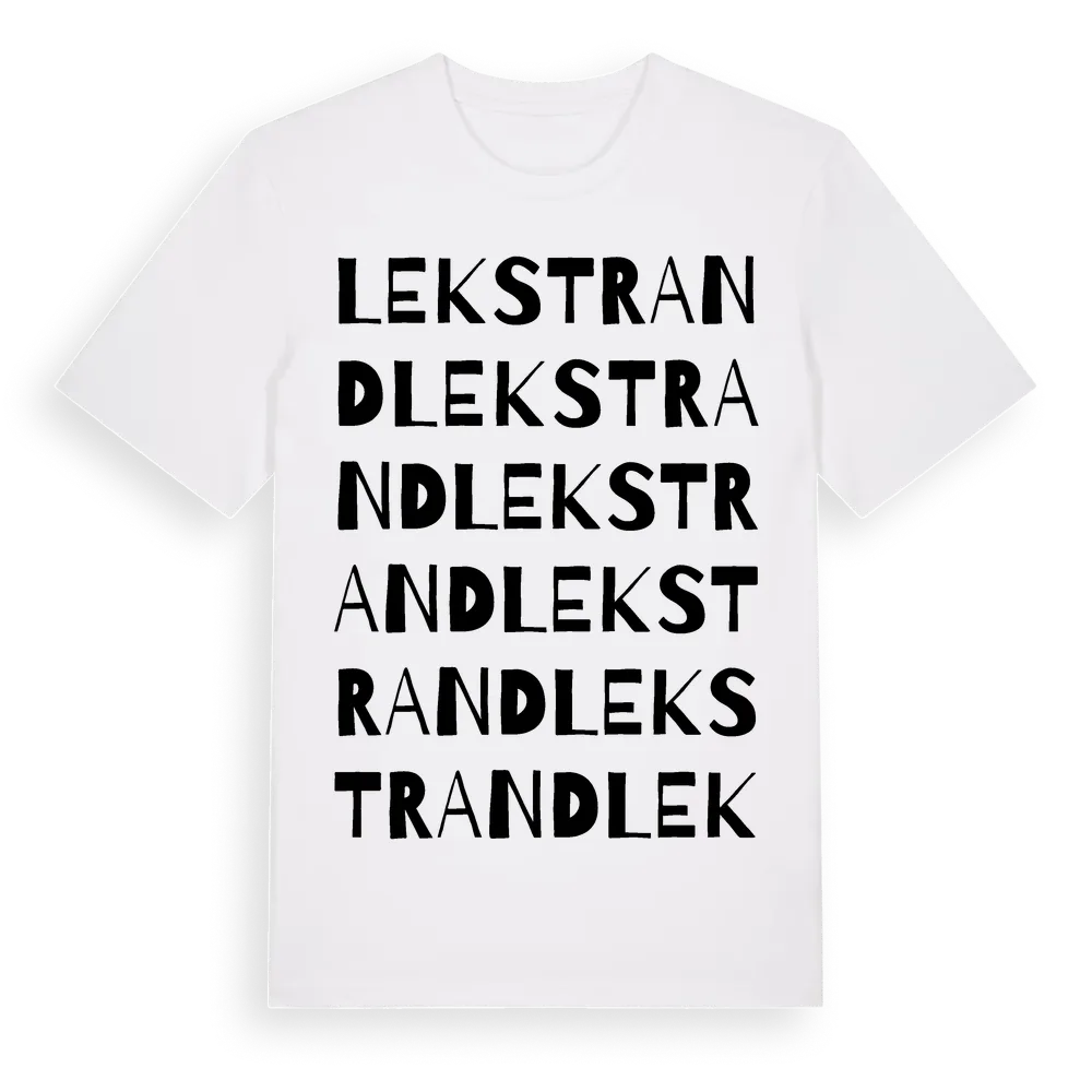 Lekstrand ordlek t-shirt är inspirerad av Lekstrand i Gävleborgs län, Sverige. Tröjan är designad för dig som har en speciell koppling till platsen – oavsett om du bor här, har rötterna här eller bara älskar Lekstrand.