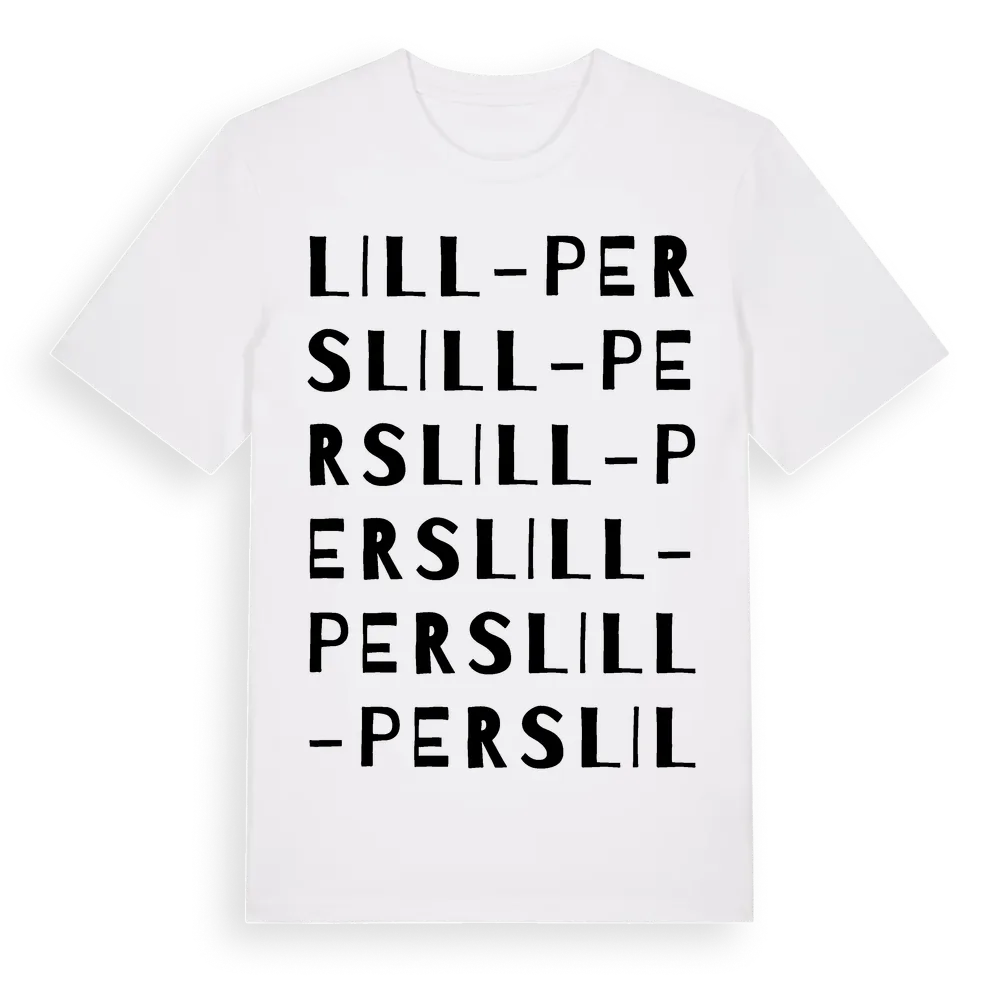 Lill-Pers ordlek t-shirt är inspirerad av Lill-Pers i Gävleborgs län, Sverige. Tröjan är designad för dig som har en speciell koppling till platsen – oavsett om du bor här, har rötterna här eller bara älskar Lill-Pers.