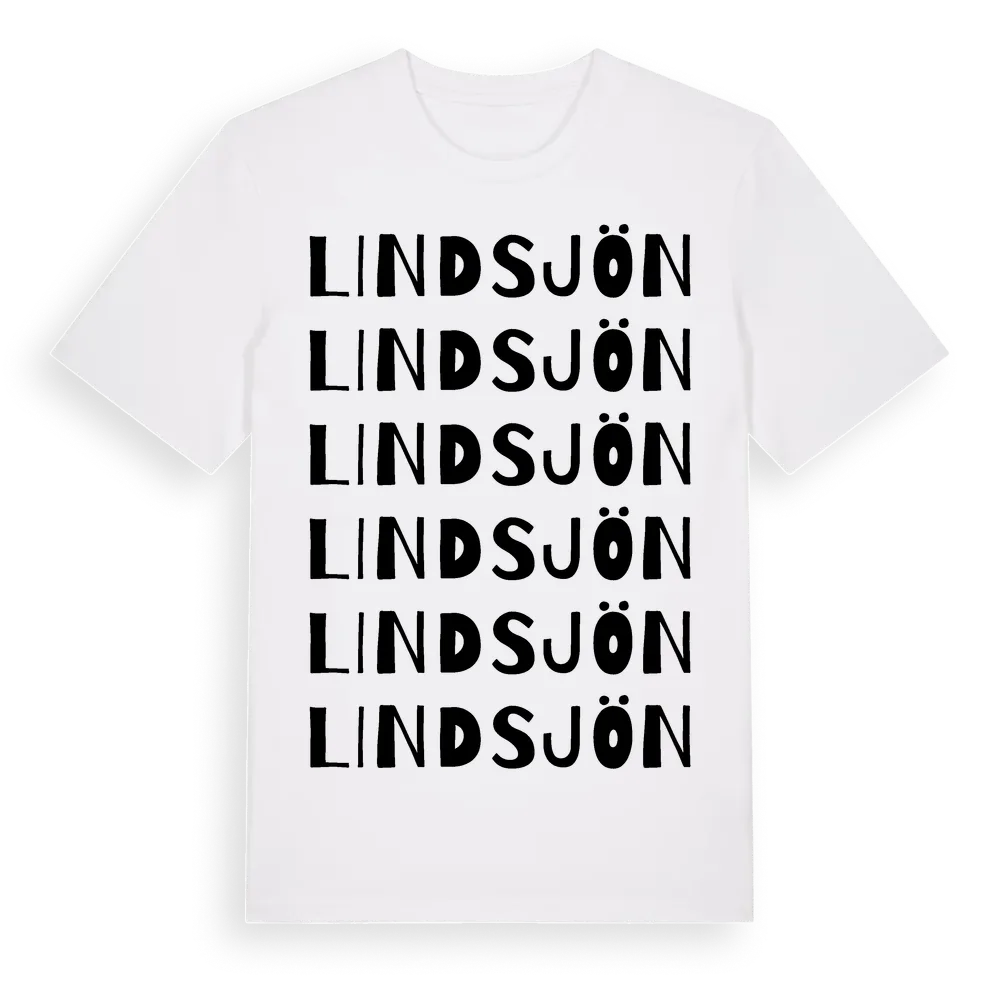 Lindsjön ordlek t-shirt är inspirerad av byn Lindsjön i Gävleborgs län, Sverige. Tröjan är designad för dig som har en speciell koppling till platsen – oavsett om du bor här, har rötterna här eller bara älskar Lindsjön.