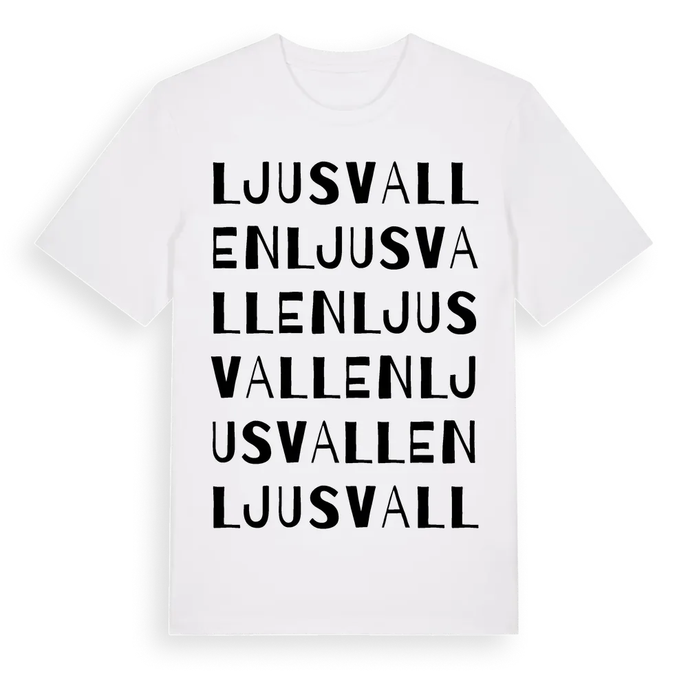 Ljusvallen ordlek t-shirt är inspirerad av Ljusvallen i Gävleborgs län, Sverige. Tröjan är designad för dig som har en speciell koppling till platsen – oavsett om du bor här, har rötterna här eller bara älskar Ljusvallen.