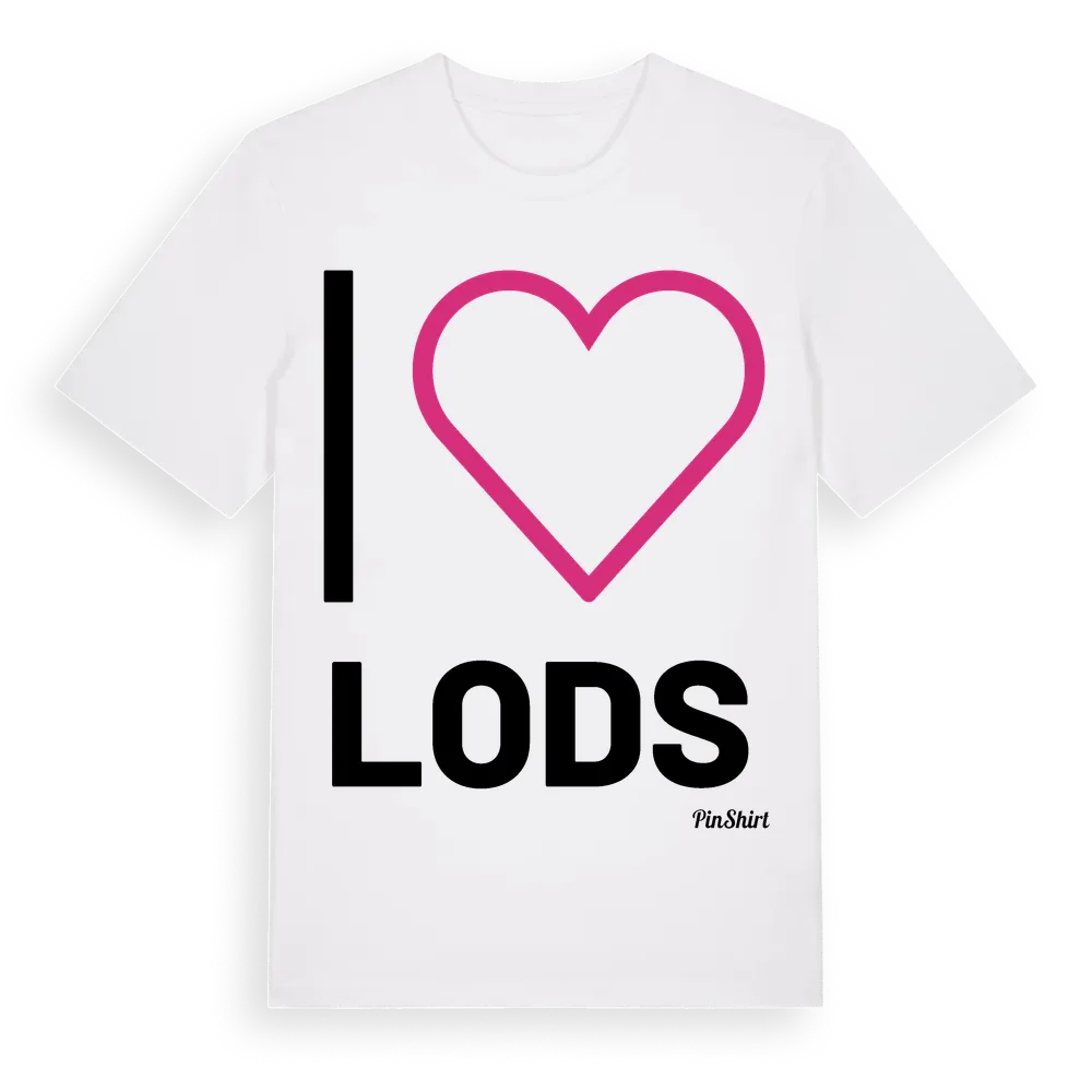Jag älskar Lods t-shirt stort tryck är inspirerad av Lods i Gävleborgs län, Sverige. Tröjan är designad för dig som har en speciell koppling till platsen – oavsett om du bor här, har rötterna här eller bara älskar Lods.