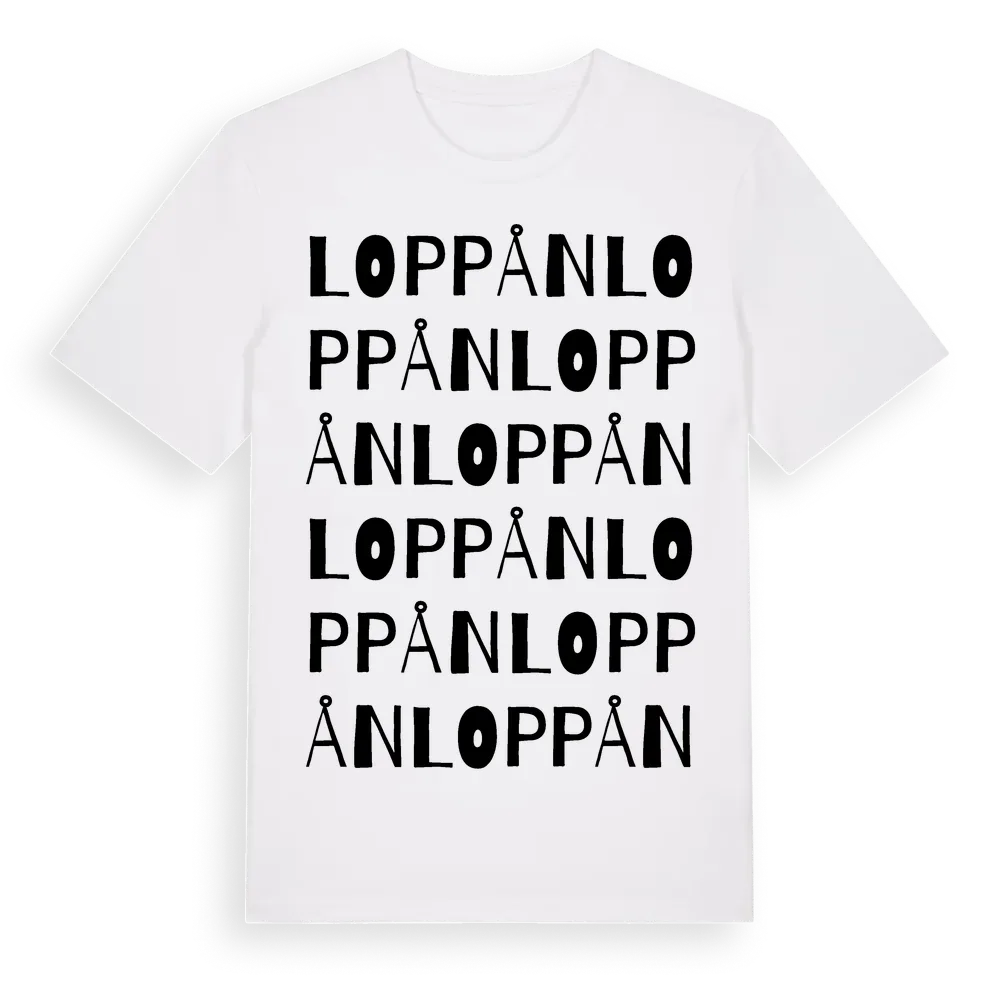 Loppån ordlek t-shirt är inspirerad av Loppån i Gävleborgs län, Sverige. Tröjan är designad för dig som har en speciell koppling till platsen – oavsett om du bor här, har rötterna här eller bara älskar Loppån.