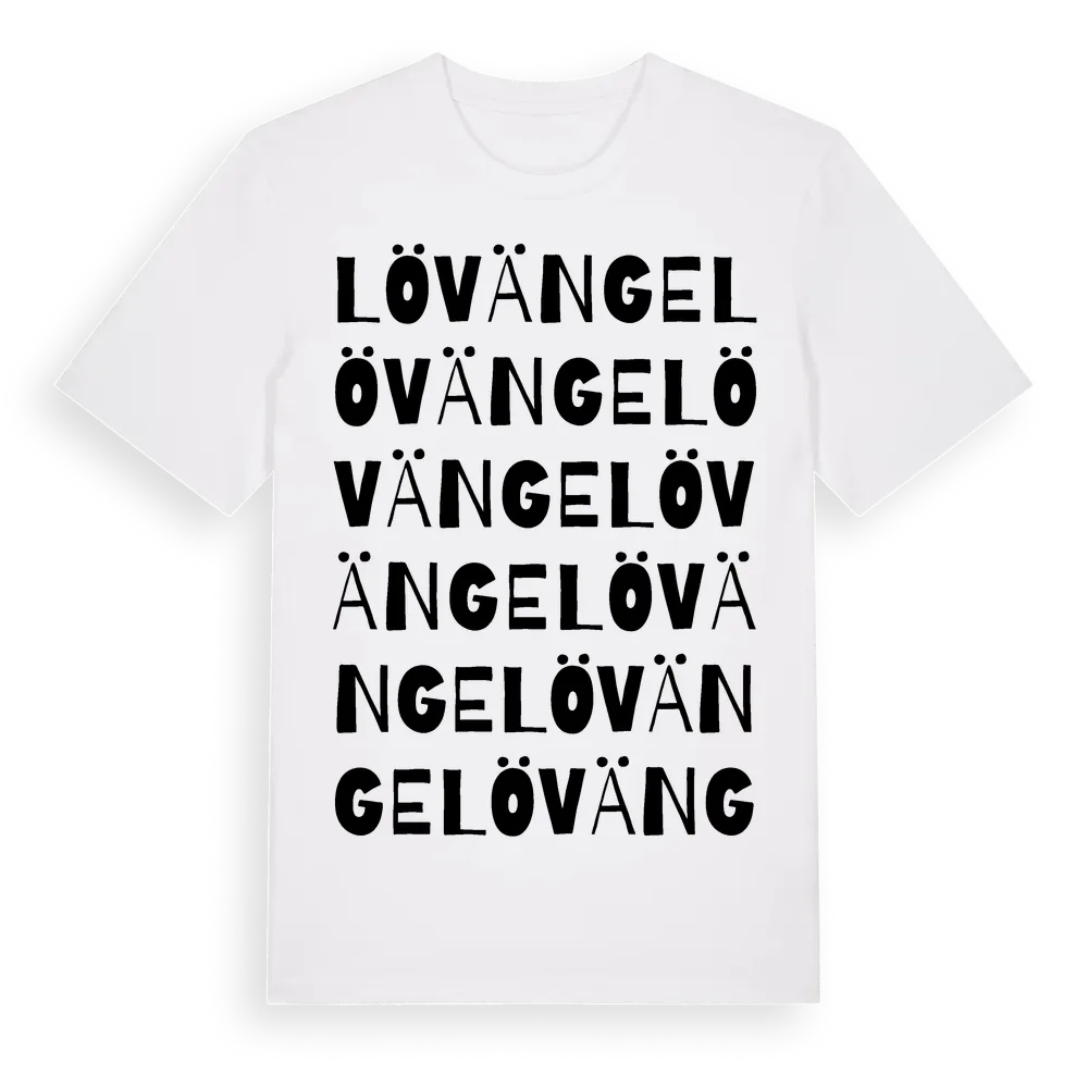 Lövänge ordlek t-shirt är inspirerad av Lövänge i Gävleborgs län, Sverige. Tröjan är designad för dig som har en speciell koppling till platsen – oavsett om du bor här, har rötterna här eller bara älskar Lövänge.