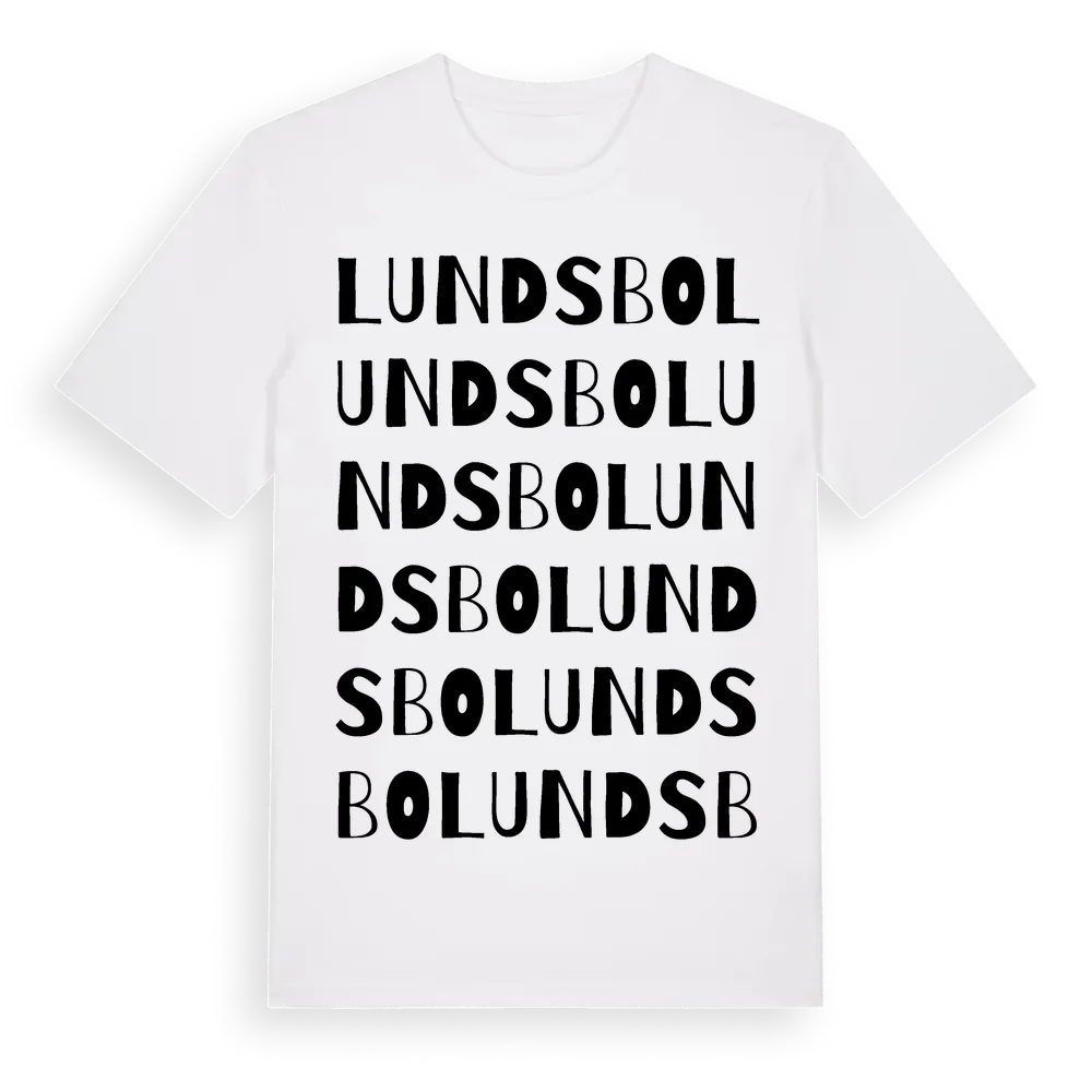 Lundsbo ordlek t-shirt är inspirerad av Lundsbo i Gävleborgs län, Sverige. Tröjan är designad för dig som har en speciell koppling till platsen – oavsett om du bor här, har rötterna här eller bara älskar Lundsbo.