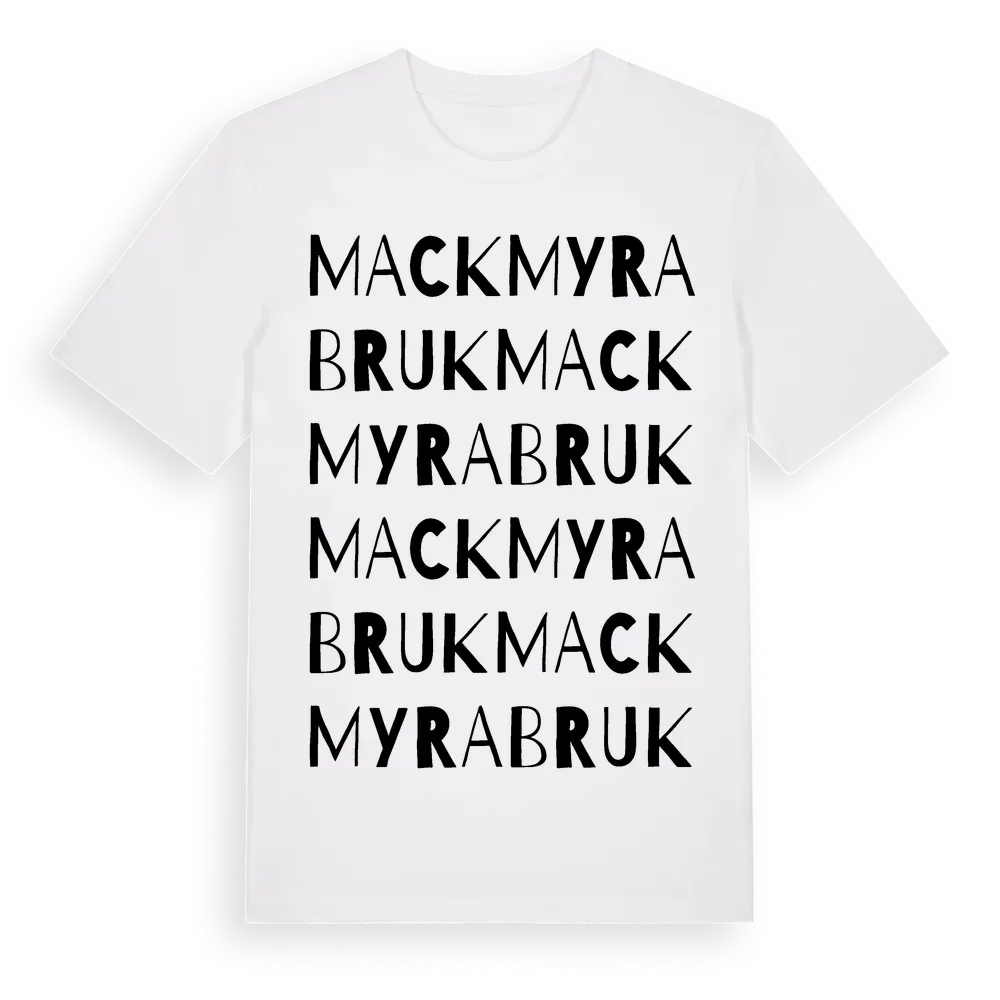En ordlek byggd på Mackmyra Bruks namn. Subtilt och klurig – ett motiv som bara de som verkligen känner platsen fullt ut förstår. Premium bomull, unisex – från byn Mackmyra Bruk i Gävleborgs län.