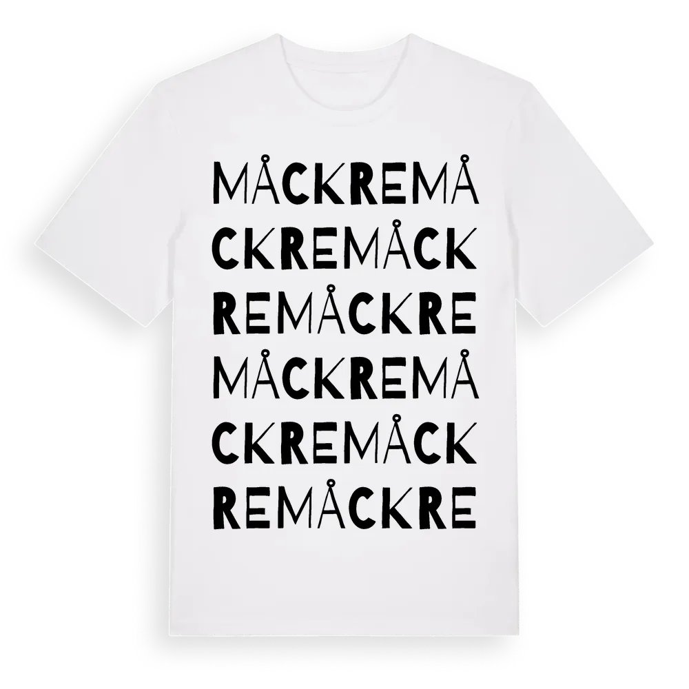 Måckre ordlek t-shirt är inspirerad av Måckre i Gävleborgs län, Sverige. Tröjan är designad för dig som har en speciell koppling till platsen – oavsett om du bor här, har rötterna här eller bara älskar Måckre.