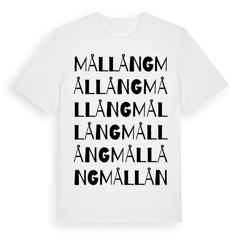 Mållång ordlek t-shirt är inspirerad av byn Mållång i Gävleborgs län, Sverige. Tröjan är designad för dig som har en speciell koppling till platsen – oavsett om du bor här, har rötterna här eller bara älskar Mållång.