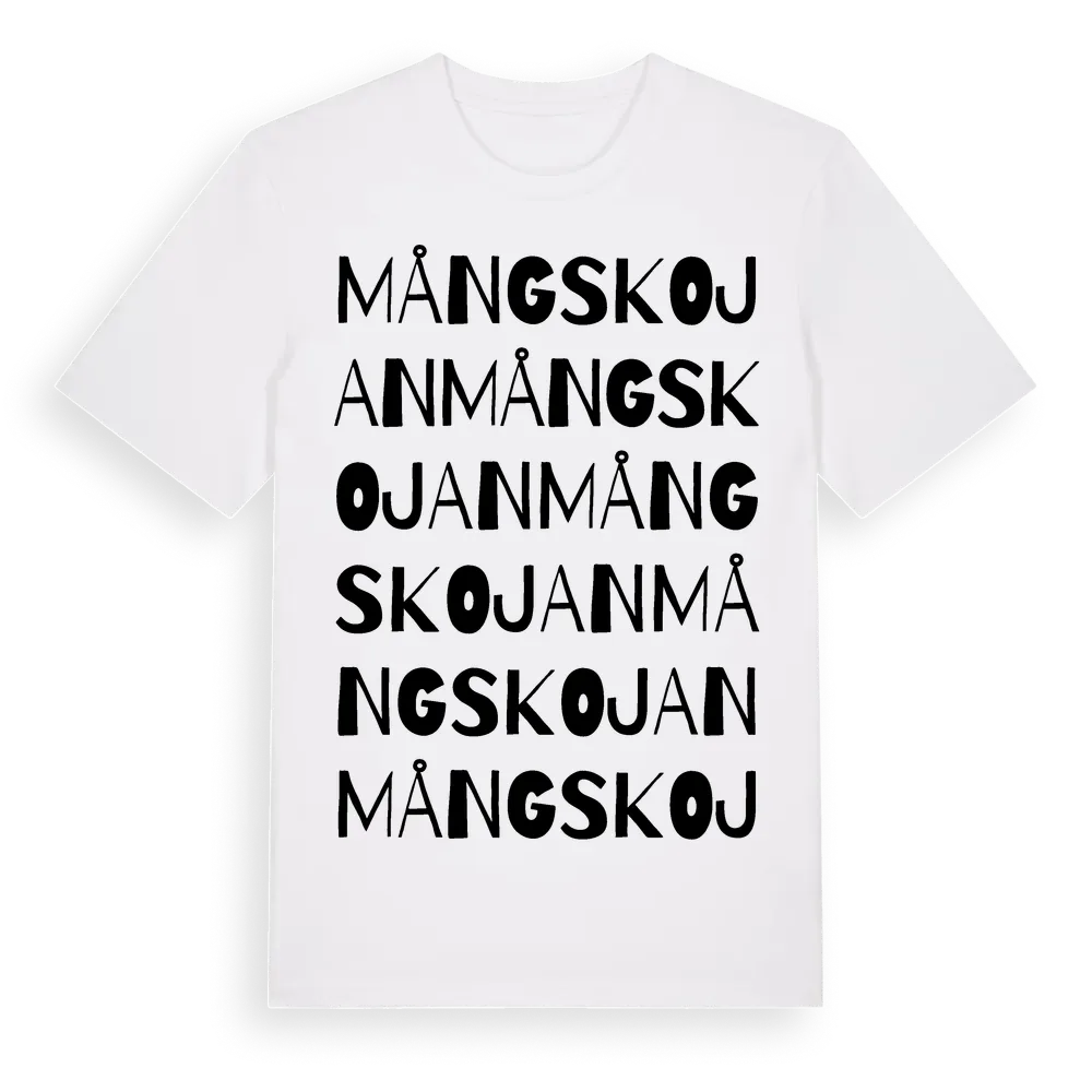 Mångskojan ordlek t-shirt är inspirerad av Mångskojan i Gävleborgs län, Sverige. Tröjan är designad för dig som har en speciell koppling till platsen – oavsett om du bor här, har rötterna här eller bara älskar Mångskojan.