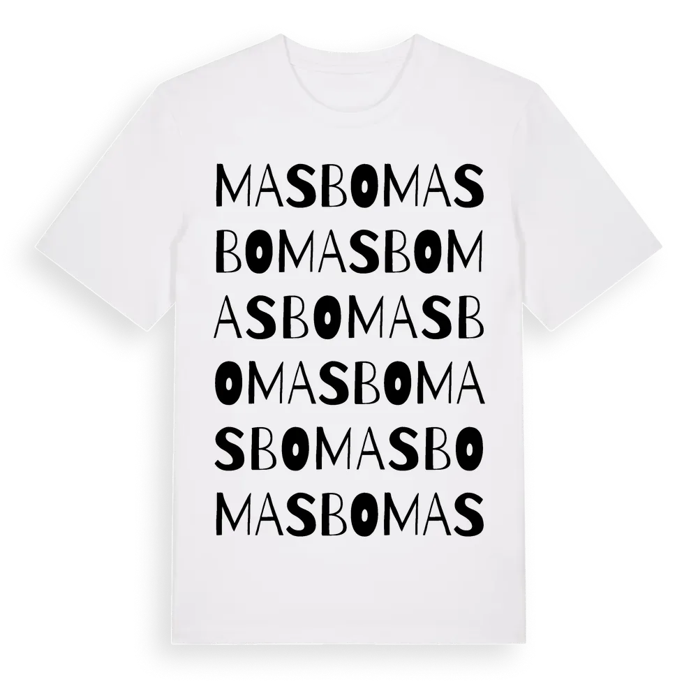 En ordlek byggd på Masbos namn. Subtilt och klurig – ett motiv som bara de som verkligen känner platsen fullt ut förstår. Premium bomull, unisex – från byn Masbo i Gävleborgs län.