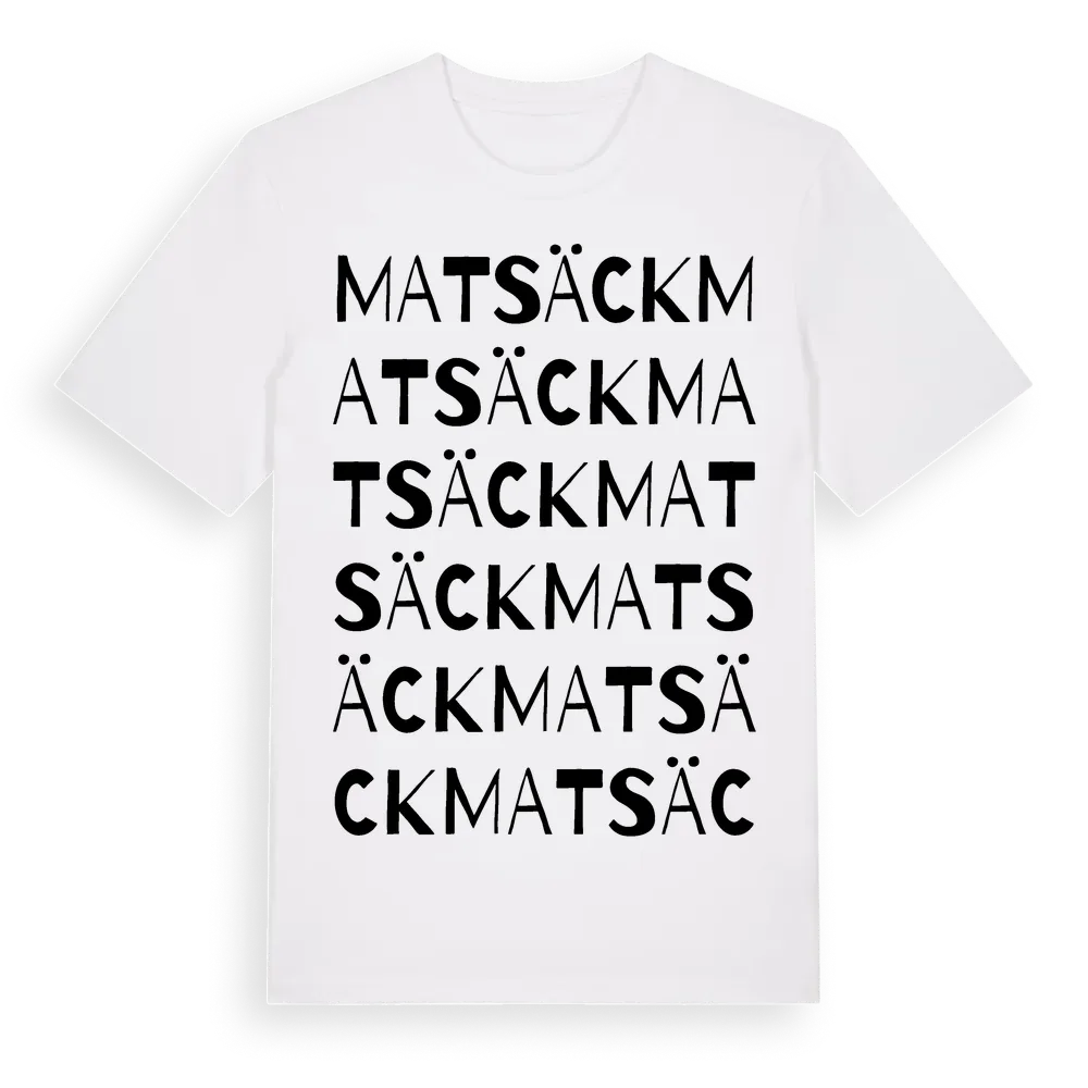 Matsäck ordlek t-shirt är inspirerad av Matsäck i Gävleborgs län, Sverige. Tröjan är designad för dig som har en speciell koppling till platsen – oavsett om du bor här, har rötterna här eller bara älskar Matsäck.