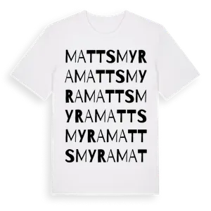 Mattsmyra är en by i Gävleborgs län, Sverige. Våra t-shirts med motiv från Mattsmyra är designade för dig som har en speciell koppling till platsen – oavsett om du bor här, har rötterna här eller bara älskar Mattsmyra.