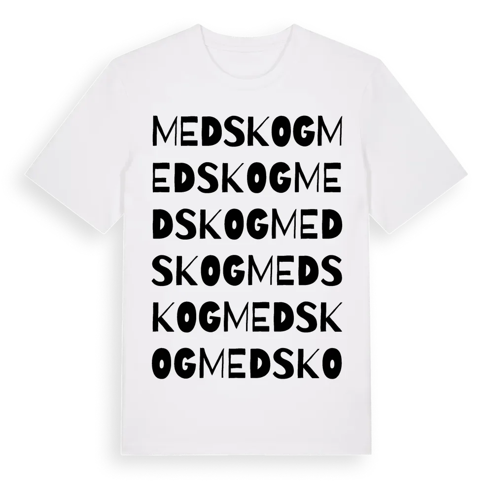 Medskog ordlek t-shirt är inspirerad av Medskog i Gävleborgs län, Sverige. Tröjan är designad för dig som har en speciell koppling till platsen – oavsett om du bor här, har rötterna här eller bara älskar Medskog.