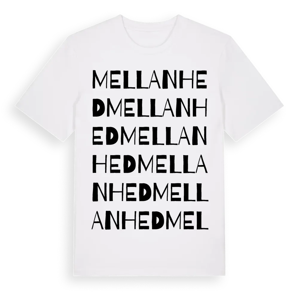 Mellanhed ordlek t-shirt är inspirerad av Mellanhed i Gävleborgs län, Sverige. Tröjan är designad för dig som har en speciell koppling till platsen – oavsett om du bor här, har rötterna här eller bara älskar Mellanhed.