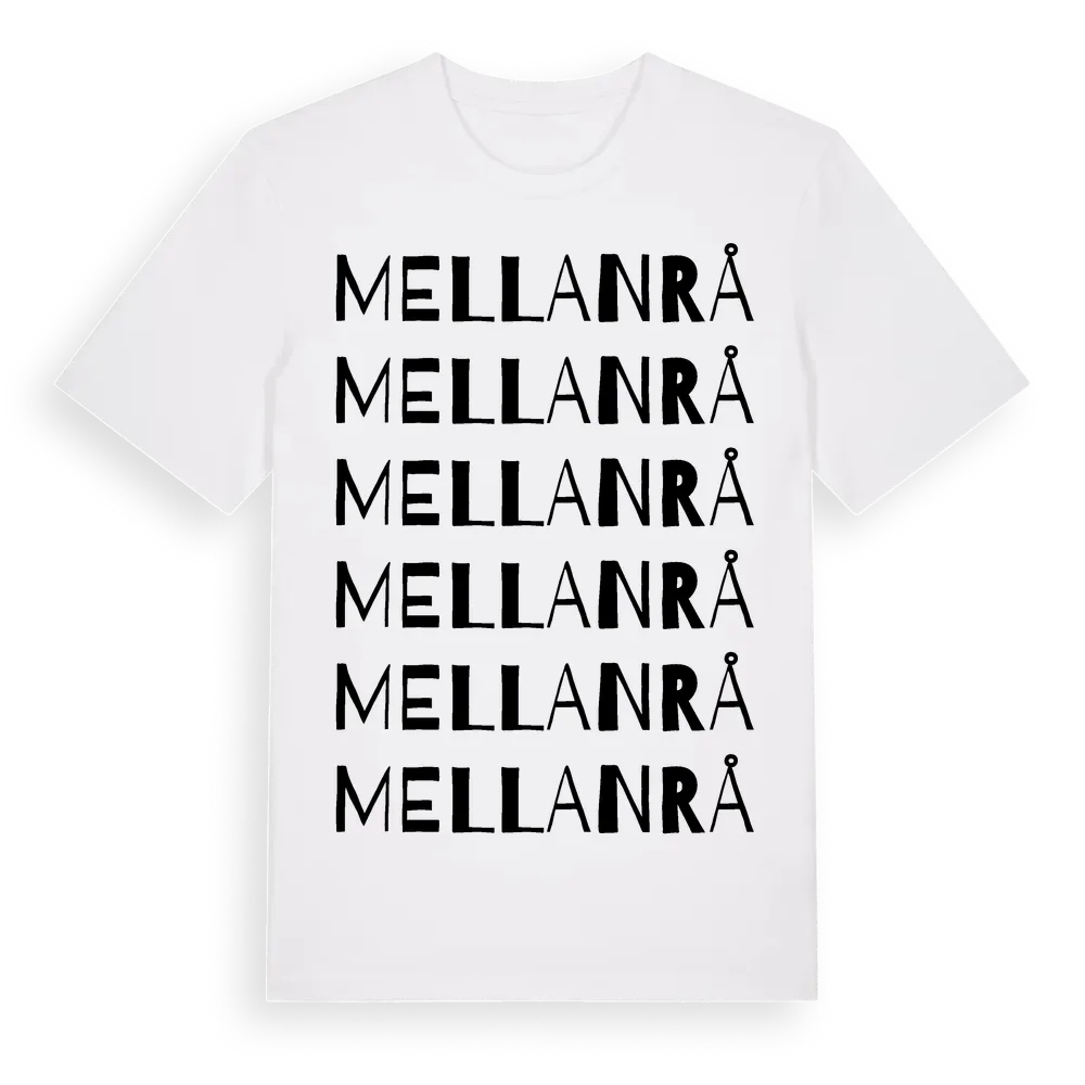 Mellanrå ordlek t-shirt är inspirerad av Mellanrå i Gävleborgs län, Sverige. Tröjan är designad för dig som har en speciell koppling till platsen – oavsett om du bor här, har rötterna här eller bara älskar Mellanrå.