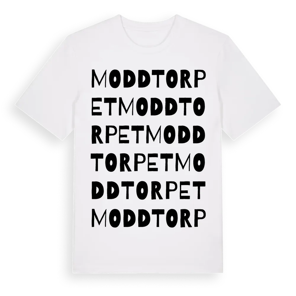 Moddtorpet ordlek t-shirt är inspirerad av Moddtorpet i Gävleborgs län, Sverige. Tröjan är designad för dig som har en speciell koppling till platsen – oavsett om du bor här, har rötterna här eller bara älskar Moddtorpet.