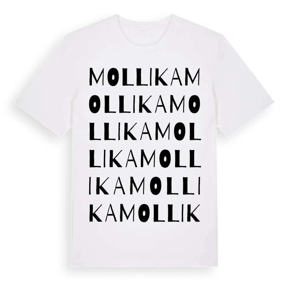 Mollika ordlek t-shirt är inspirerad av Mollika i Gävleborgs län, Sverige. Tröjan är designad för dig som har en speciell koppling till platsen – oavsett om du bor här, har rötterna här eller bara älskar Mollika.