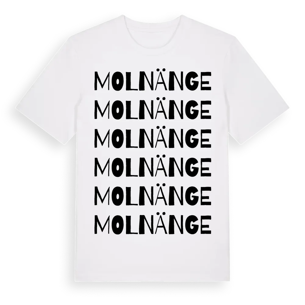 Molnänge ordlek t-shirt är inspirerad av Molnänge i Gävleborgs län, Sverige. Tröjan är designad för dig som har en speciell koppling till platsen – oavsett om du bor här, har rötterna här eller bara älskar Molnänge.