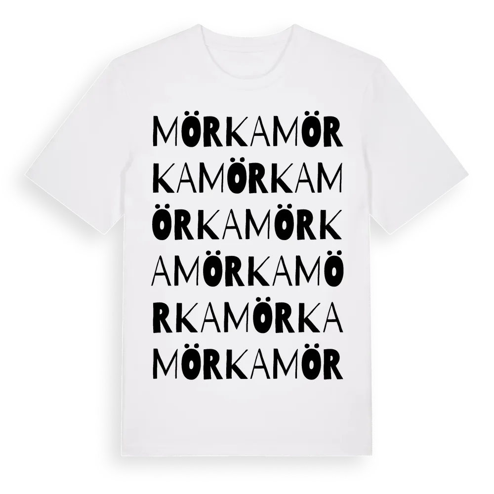 Mörka ordlek t-shirt är inspirerad av Mörka i Gävleborgs län, Sverige. Tröjan är designad för dig som har en speciell koppling till platsen – oavsett om du bor här, har rötterna här eller bara älskar Mörka.