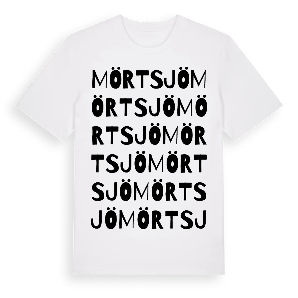 Mörtsjö ordlek t-shirt är inspirerad av byn Mörtsjö i Gävleborgs län, Sverige. Tröjan är designad för dig som har en speciell koppling till platsen – oavsett om du bor här, har rötterna här eller bara älskar Mörtsjö.