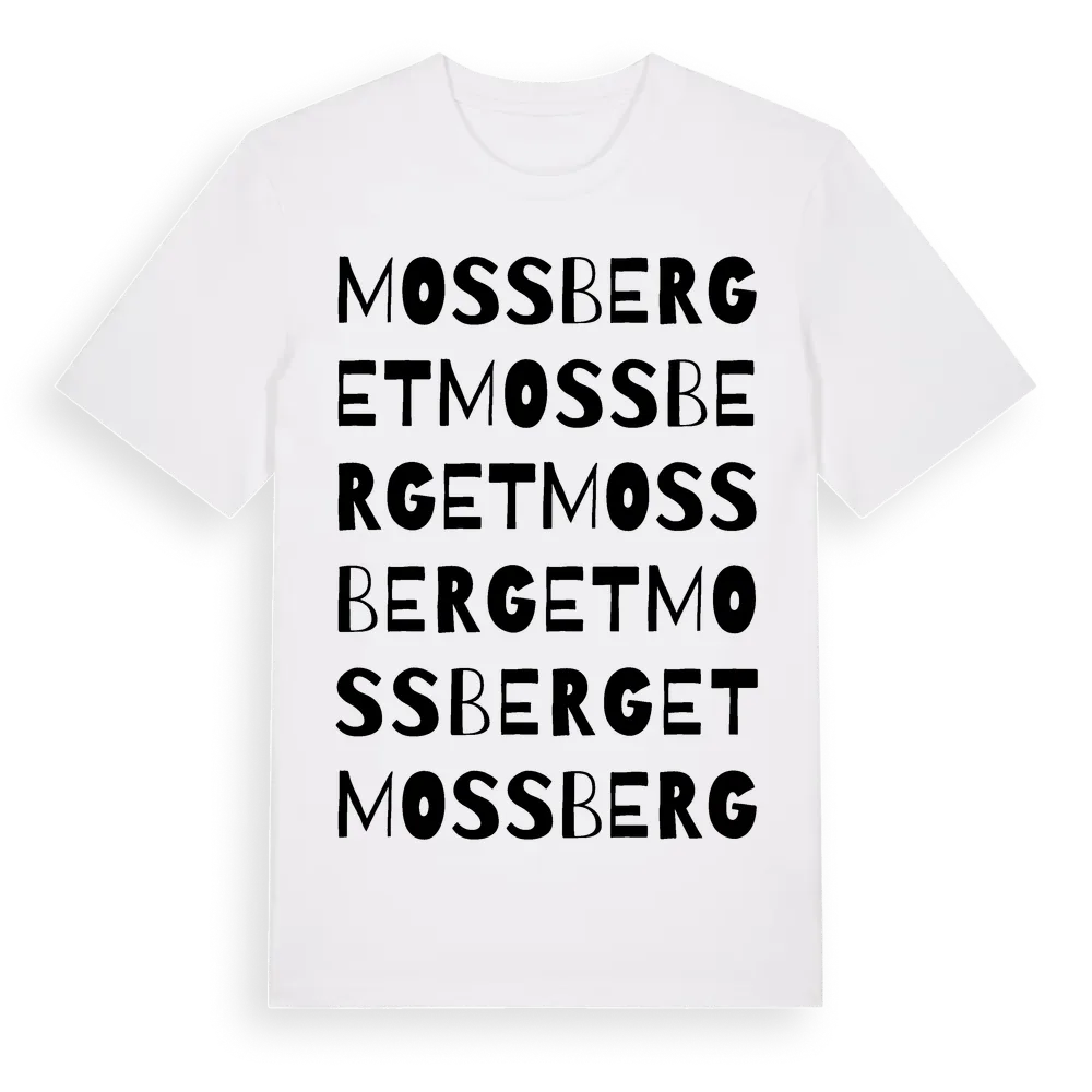 Mossberget ordlek t-shirt är inspirerad av stadsdelen Mossberget i Gävleborgs län, Sverige. Tröjan är designad för dig som har en speciell koppling till platsen – oavsett om du bor här, har rötterna här eller bara älskar Mossberget.