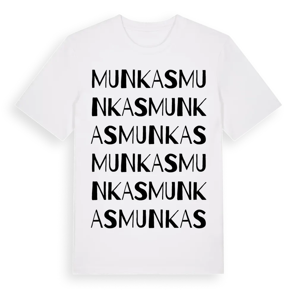 Munkas ordlek t-shirt är inspirerad av Munkas i Gävleborgs län, Sverige. Tröjan är designad för dig som har en speciell koppling till platsen – oavsett om du bor här, har rötterna här eller bara älskar Munkas.