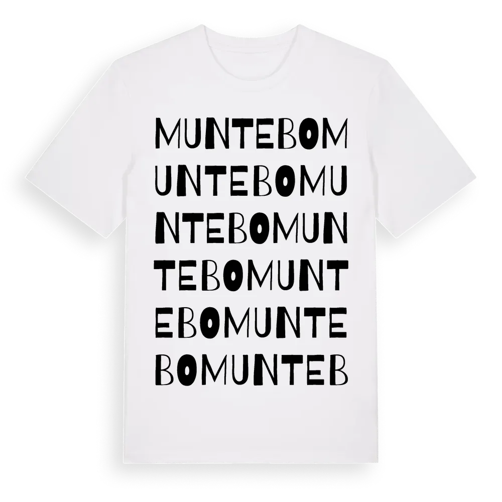 Muntebo ordlek t-shirt är inspirerad av stadsdelen Muntebo i Gävleborgs län, Sverige. Tröjan är designad för dig som har en speciell koppling till platsen – oavsett om du bor här, har rötterna här eller bara älskar Muntebo.