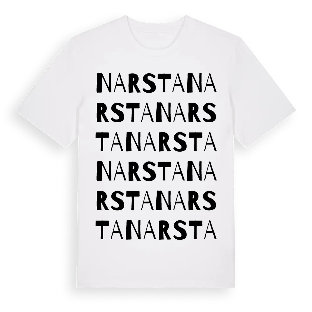Narsta ordlek t-shirt är inspirerad av Narsta i Gävleborgs län, Sverige. Tröjan är designad för dig som har en speciell koppling till platsen – oavsett om du bor här, har rötterna här eller bara älskar Narsta.